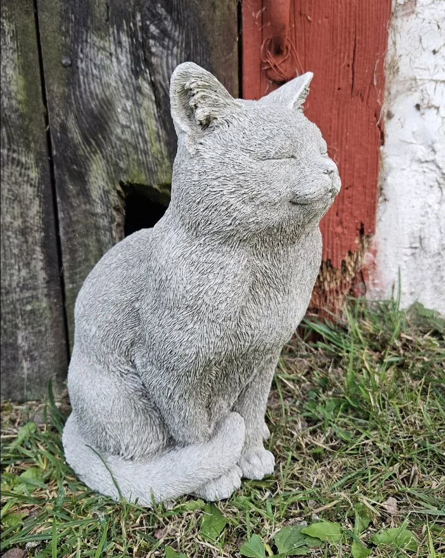 Betongfigurer såsom katter, pumpor, blommor och fågelbad m m.